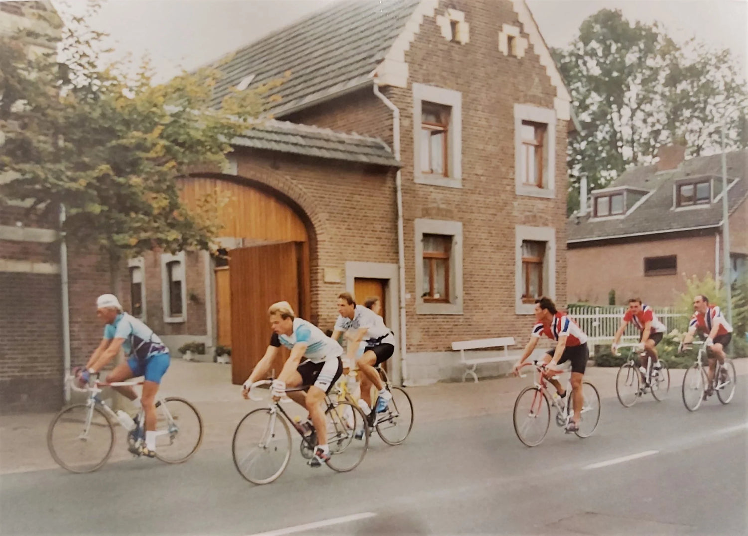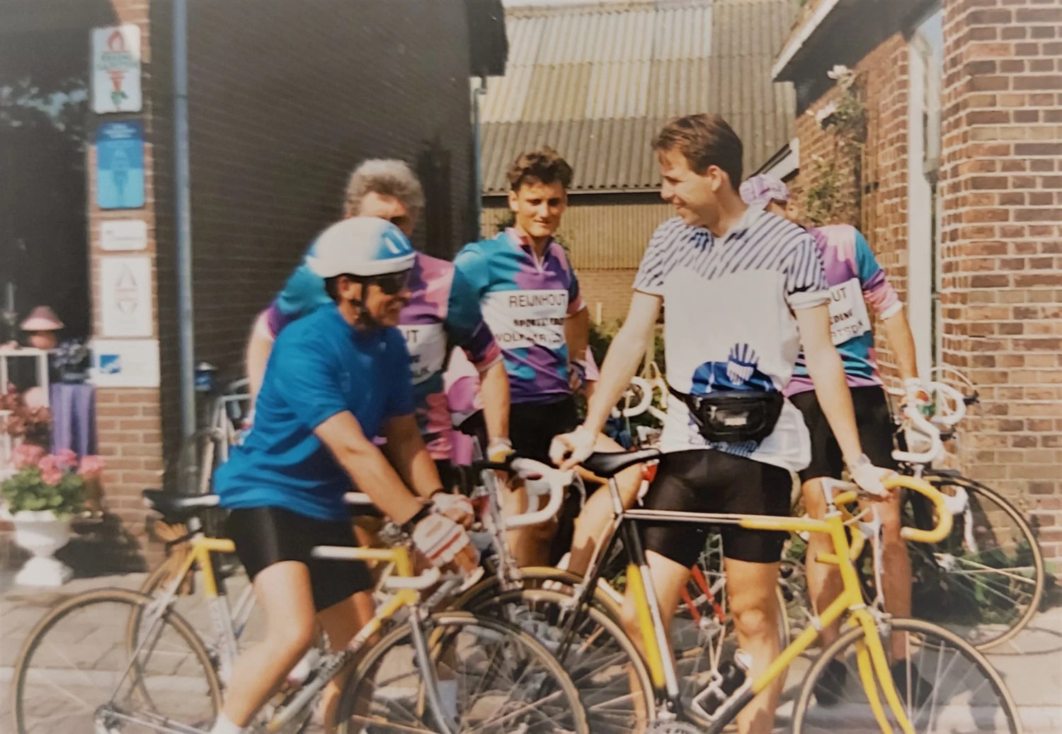 Team Reysport aan de start van een toertocht in Limburg in de jaren 80. Eén van de eerste toertochten in onze eigen custom wielertenues, waarna er later nog veel meer van volgden!